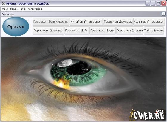 Искусство предсказания судьбы человека в зависимости от имени и дня его рождения существовало с древнейших времен и, пройдя через века, не утратило к себе интерес и по сей день. С помощью этой программы каждый сможет узнать, каким будет его настоящее и будущее по Классическому, Зодиакальному, Китайскому, Авестийскому, Древнеславянскому и даже Афро-Карибскому гороскопам. Кроме того, вы узнаете, что означает Ваше имя, и как оно может влиять на характер человека. А встроенная энциклопедия имен включает в себя все имена, которые только могут встречаться в нашей стране. В программе реализован специальный алгоритм анализа "Оракул". Вам будет достаточно ввести ваше имя и дату рождения, и программа выдаст о Вас огромное количество занимательной и интересной информации.