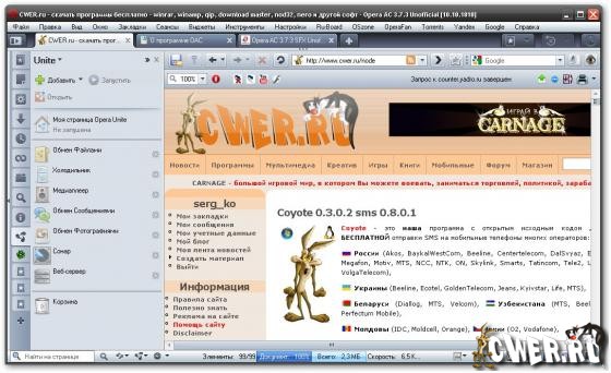 Opera AC - эта сборка сделана на основе Opera AC 3.7.3 и оригинального браузера Opera 10.10.1810 Unite. В сборку помещены многие возможности, несколько сторонних утилит, и сам браузер настроен максимально удобно для среднего пользователя.