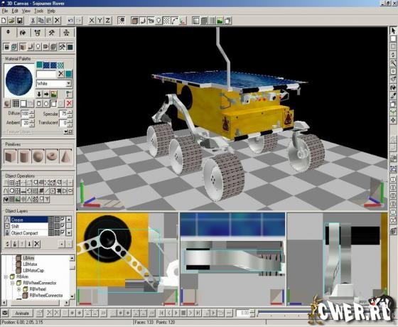 3D Canvas - популярная программа для 3D-моделирования и создания анимации в режиме реального времени. 3D Canvas использует технологию Drag&Drop, поэтому построение трехмерных моделей, в том числе очень сложных, не представялет особых затруднения даже для начинающих пользователей. Принцип создания анимации прост и нагляден: достаточно указать позицию объекта в каждый конкретный момент, и программа автоматически произведет сглаживание траекторий.