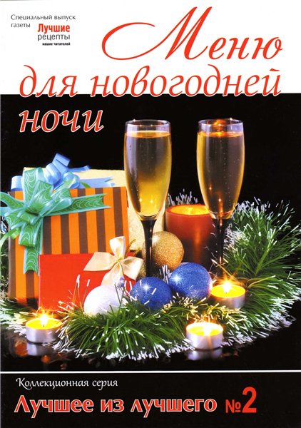 Замечательный сборник рецептов к новогоднему празднику, составленный по разделам: Закуски и салаты, Вторые блюда, Выпечка, Десерты и напитки.