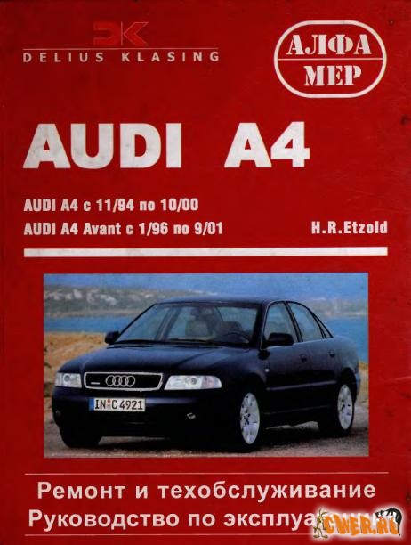 Руководство по ремонту и техническому обслуживанию автомобиля AUDI A4 1995-2000 годов выпуска. Рассмотрены модели с 4-х и 6-и цилиндровыми бензиновыми и дизельными двигателями.