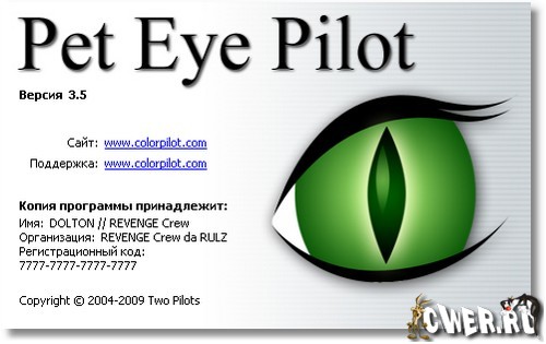 Pet Eye Pilot - программа для удаления эффекта синих, зелёных или жёлтых глаз с цифровых изображений животных. Программа позволяет регулировать область обработки и яркость цвета глаз. Имеется окно предварительного просмотра. После установки можно посмотреть демонстрационный пример.