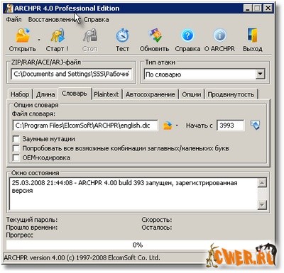 Advanced Archive Password Recovery - программа для восстановления забытых паролей к архивам ZIP (PKZIP, WinZIP), ARJ/WinARJ, RAR/WinRAR и ACE/WinACE. Программа объединяет в себе все возможности Advanced ZIP Password Recovery, Advanced ARJ Password Recovery, Advanced ACE Password Recovery и Advanced RAR Password Recovery. Кроме этих возможностей в ARCHPR возможно гарантированное восстановление содержимого WinZIP архивов, если они содержат больше пяти файлов.