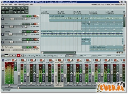 Reaper - аудиоредактор. При смешном размере позволяет записывать, подготавливать, редактировать и создавать многоканальные аудиотреки.