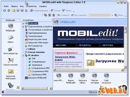 MOBILedit! (с поддержкой Symbian телефонов) - уникальная программа для управления вашим мобильным телефоном с компьютера через Bluetooth, ИК-порт или кабель. Привлекательность MOBILedit заключается в том, что она рассчитана не на какую то конкретную марку телефона, а подойдет для большинство популярных аппаратов.
