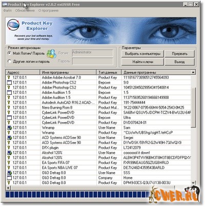 Product Key Explorer показывает регистрационные данные программного обеспечения, установленного на Вашем компьютере (поддерживает около 500 различных приложений) и Вашей ОС. Эти данные можно сохранить и использовать в случае переустановки приложений и системы. Имеется возможность просмотра и сохранения данных с удалённых компьютеров.