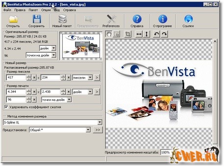 PhotoZoom позволяет увеличивать размер графичесих изображений с минимальной потерей качества используя специальные алгоритмы.