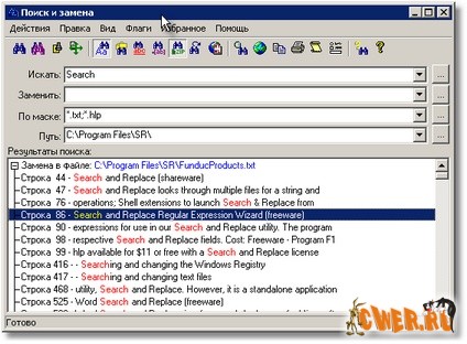 Search&Replace - отличная программа для поиска и замены текстовых строк в текстовых и бинарных файлах.
