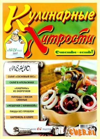 Кулинарный журнал Кулинарные хитрости № 21 2007 г. В номере - салат "Сосновый лес", салат в апельсинах, "Каштаны" из окорочков, голубцы с мясом слоеные, "Мешочки с начинкой", пицца без проблем, картофель в кляре и множество других вкусных рецептов.