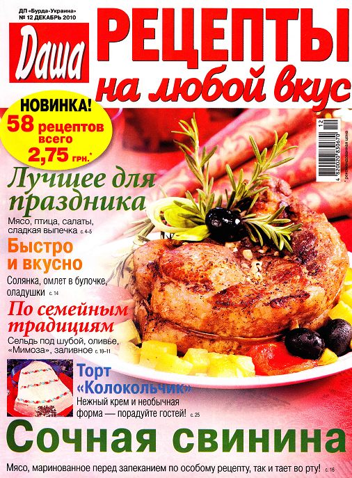 "Кулинария. Коллекция" - сборник оригинальных рецептов на каждый день. В каждом номере: салаты, супы, блюда из мяса и рыбы, картофеля и грибов, соусы, гренки, торты - все, что нужно для разнообразного меню, а также полезные материалы и советы, тонкости и хитрости кулинарного мастерства.