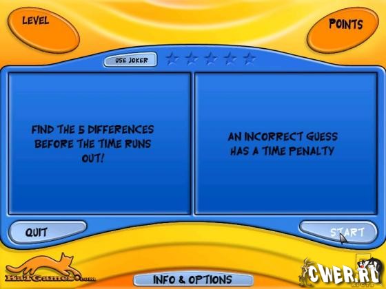 Известнейшая игра "найди различия"! Эта умно разработанная игра содержит намного больше, чем можно подумать: и дружественный интерфейс, и оригинальную и приятную графику, и неожиданные сюрпризы. Но настоящая изюминка игры в том, что различия выбираются случайным образом, и игра никогда не повторяется. Учтите, вы можете серьезно увлечься этой сказочно выглядящей игрой с превосходным звуком - веселой переделкой любимой всеми классики.