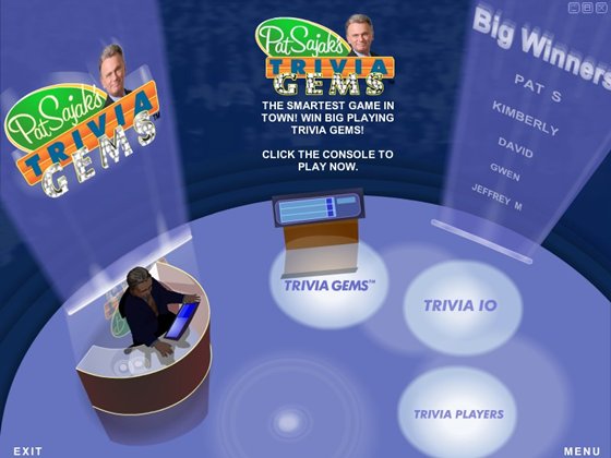 Примите участие в увлекательной классической американской шоу-игре! Отвечайте на вопросы из самых разных областей и заберитесь на самую вершину игровой пирамиды. Играйте на время в одиночной игре или зовите на помощь друзей и членов семьи в раунде Trivia Players. Это один из чемпионатов, где ставки очень высоки, а веселье безгранично! Делайте свои ставки на Pat Sajak`s Trivia Gems и пусть Вам повезет!