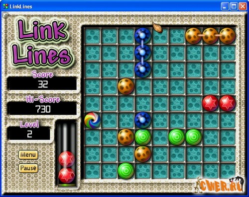 LinkLines - это очередная реинкарнация классической игрульки Lines. Цель игры - составлять в рядок пять мячиков одного цвета, да так, чтобы игровое поле не заполнилось этими самыми мячиками. Легендарная любимая игра секретарш и офисных работников.