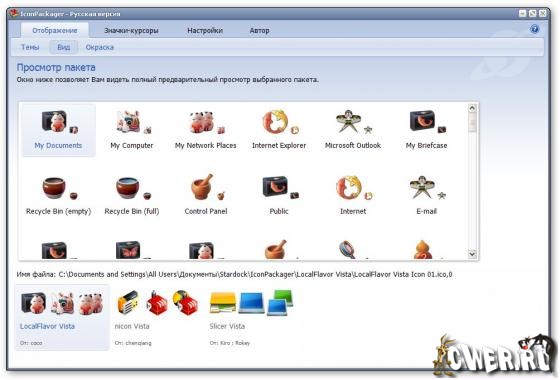 IconPackager - программа, которая может заменить все ваши значки в системе Windows, применив пакеты значков, входящие в дистрибутив. Программа также может сохранить значки вашего рабочего стола и создать из них пакет значков, которым Вы сможете поделиться с другими или оставить для более позднего использования.
