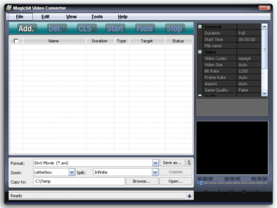 Magicbit Video Converter программа предназначена для конвертирования видео-файлов практически всех популярных форматов, включая DVD, VCD, SVCD, MOV, iPod, PSP, RM, AVI, MPEG, WMV, MPEG1/2/4, 3GP, Xvid и т.д.
