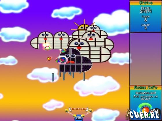 Попробуйте эту отпадную трехмерную версию арканоида, которая будет интересна и увлекательна для игроков всех уровней мастерства. Вы увидите потрясающие пейзажи и картины: извивающиеся щупальца огромного морского змея, величественного фараона, танцующего египетский танец, вертолет, наклоняющийся на виражах и маневрирующий трех измерениях - и это лишь несколько из 150 потрясающих уровней.