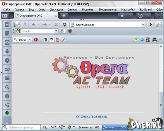 Скачать программу Opera AC 3.7.3 SFX Unofficial 1792 Unite (14.4 МБ):
