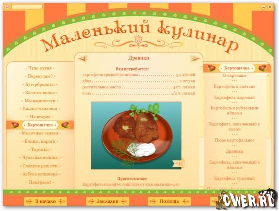 Готовить вкусно могут не только мамы и бабушки, у которых за плечами многолетний опыт! Мультимедийная энциклопедия «Маленький кулинар» поможет тебе постигнуть тайны поварского искусства. Ты научишься варить, жарить и печь самые разные блюда на каждый день и для праздничного стола, а также узнаешь, как правильно сервировать стол и украшать угощения. Кроме того, в энциклопедии есть встроенная флеш-игра «Кулинарный тетрис», за которой можно отдохнуть и закрепить полученные знания. Несмотря на то что диск адресован юным кулинарам, взрослые тоже смогут узнать с его помощью много полезного. Если хочешь достичь вершин кулинарного мастерства, то эта программа для тебя!