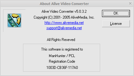 Alive Video Converter - многоформатный конвертер видео файлов, поддерживающий все популярные форматы. Интегрируется в Проводник, и чтобы провести конвертацию из одного формата в другой, нужно лишь кликнуть на видео файле правой кнопкой мыши и выбрать пункт "Convert to AVI" (или MPEG-1, MPEG-2, MP4, 3GP и т.д.). Конвертирование будет происходить с заранее заданными настройками. С помощью Alive Video Converter можно конвертировать видео в форматы для мобильных устройств: PSP, iPod/ iPhone, Zune, MP4, 3GP, 3G2. Также конвертирует в AVI, MPEG-1, MPEG-2, WMV, ASF, AVI, DivX, XviD, MPEG, WMV, MOV, ASF, AAC, AC3, M4A, MP3.