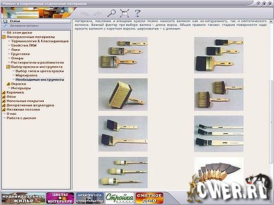 Диск содержит исчерпывающие сведения об отделочных материалах и технологиях, которые необходимы каждому, кто поставил перед собой задачу обустройства собственного дома. Здесь вы найдете необходимый теоретический материал, который позволит вам непосредственно самому заняться ремонтом и отделкой помещений и не чувствовать себя неподготовленным к непростому разговору с дизайнером или бригадиром отделочников.