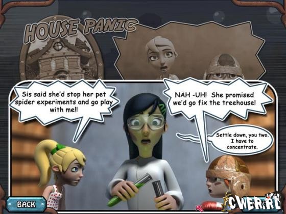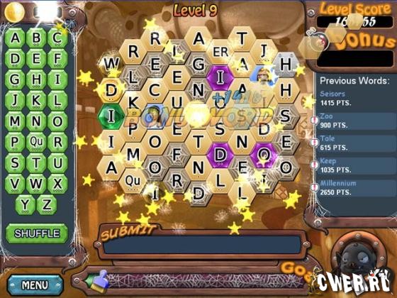 Неудачный научный эксперимент привел к ужасным последствиям: десять пауков стали супер разумными, захватили ваш дом и теперь там безобразничают. Соединяйте буквы в слова, сметая, таким образом, паутину! Если вы используете в словах бонусные фишки с буквами, такие как бриллианты, рубины и изумруды, вы получите дополнительные очки. Кроме того, в игре есть бонусное слово, составив которое вы сможете избавиться от противной паутины. Но будьте осторожны! Не спускайте глаз с пауков, ведь они хотят опутать вам своей паутиной!