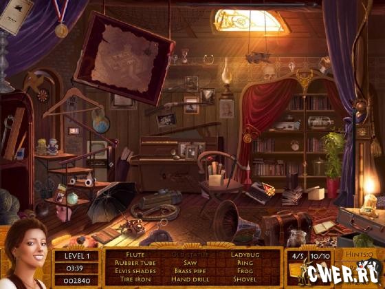 Мини-игра жанра "Я ищу". Ах, джунгли Южной Америки - жаркие, влажные и таинственные, идеальное место для приключений и поисков затерянных артефактов. Дедушка нашей героини уехал в экспедицию и пропал. Разбираясь у него дома, героиня нашла старый дневник и немедленно отправилась на поиски дедушки. В игру можно переигрывать, с каждым разом обновляется список спрятанных предметов и головоломки.