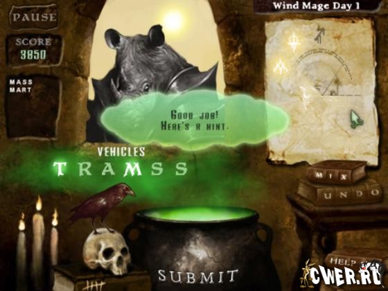 Подтвердите свое мастерство составления слов и спасите королевство! Злые волшебники превратили всех обитателей средневекового фентезийного мира в монстров. Вы можете снять проклятье, только бросив в котел правильное волшебное слово. Чем быстрее вы отыщете нужное слово, тем быстрее вы освободите поселенцев. Если вам по вкусу словесные игры, если вы фанат головоломок, или же просто хотите на время погрузиться в другой мир, то эта игра именно то, что вам нужно.