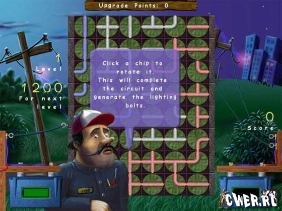 В этой игре вам предстоит попробовать себя в роли электрика. В воскресный вечер город остался без электричества — ни ужин приготовить, ни телевизор посмотреть. Вам нужно починить проводку, соединив разрозненные куски провода в непрерывную линию. Чем длиннее будет цепочка, тем больше очков вы заработаете.