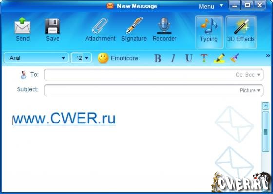 Результатом всего этого станет то, что самое обычное письмо превратится в настоящее произведение искусства с вашей личной подписью - встроенный в программу редактор позволяет вытворять и не такое.