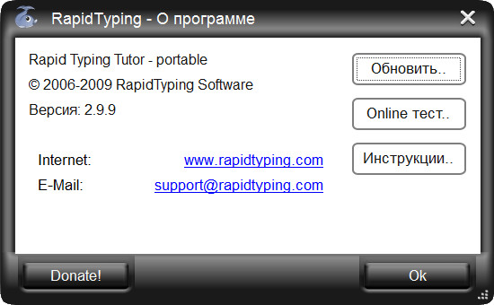 Скачать программу Portable RapidTyping Tutor 2.9.9 (3,16 МБ):