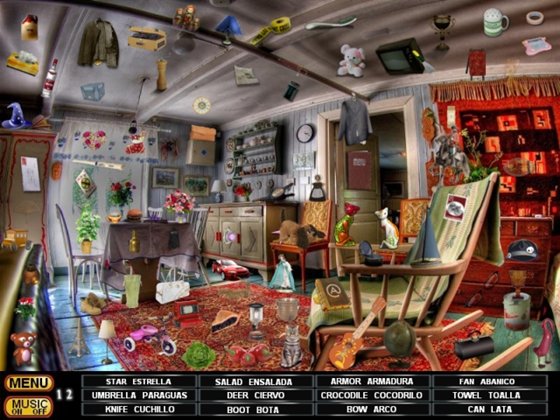 Первая часть. Простая и милая игра в жанре "Я ищу", созданная обычным любителем - Feli44, для удовольствия. Игра на двух языках, английском и испанском. Всего в игре 15 уровней чистого поиска, с приятной музыкой, без гонки на время.