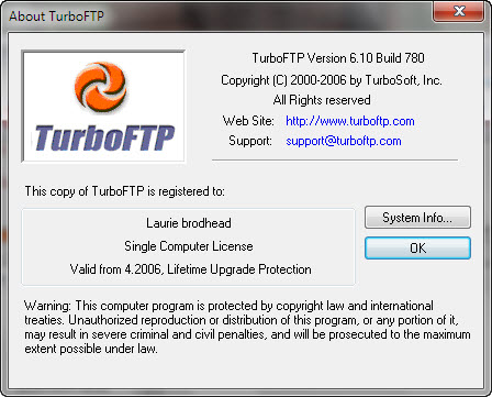 Скачать программу TurboFTP 6.10 Build 780 (6,2 МБ):