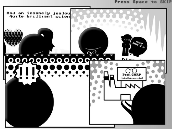 При самом входе в игру дается выбор играть парнем или девушкой. При выборе парня вашу девушку ворует злобный профессор, и вы идете спасать свою возлюбленною, проходя через хитрые ловушки негодяя.