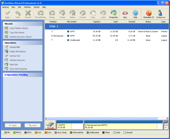 Скачать программу Partition Wizard Professional Edition v5.0 (7,25 МБ):