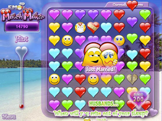 Emo's MatchMaker - это великолепная игра для всей семьи, особенно, если вы хотите поднять себе настроение. Эта особенная игра для тех, кто умеет любить, так как ваша цель – соединить любящие сердца Эмов. Составьте их парами и сделайте их счастливыми. Только от вас зависит число влюбленных пар. Потренируйте свою внимательность и составьте как можно больше молодоженов.