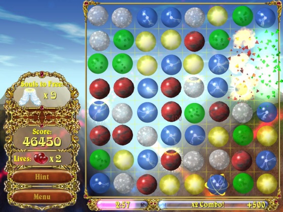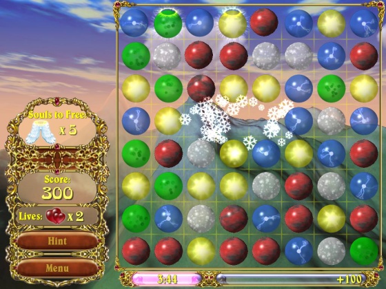 В этой логической аркаде вам предстоит сразиться в интеллектуальном поединке со злым волшебником Каралайтом, захватившем волшебную страну. Ареной для схватки станет квадратное игровое поле, на котором в хаотичном порядке расположены игровые фишки. Передвигайте их таким образом, чтобы после каждого хода образовывались цепочки из трех фишек одного цвета, после чего они исчезнут с игрового поля, а заключенные в них души вырвутся на свободу.