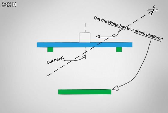 Невероятная, просто потрясающая воображение игра-головоломка! Слова:"Все гениальное - просто", как нельзя точно описывают эту игру. Суть игрушки проста - нужно переместить белый куб в зеленую зону. Но управлять им напрямую мы не можем(в игре потрясающе реализовано косвенное управление). У нас есть ножницы, которыми мы можем воздействовать на некоторые элементы. А дальше начинает действовать самая настоящая физика, и вы видите интерактивный мульт а-ля повезло-неповезло. Эта игрушка стоит потраченного времени и сил.