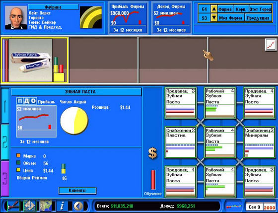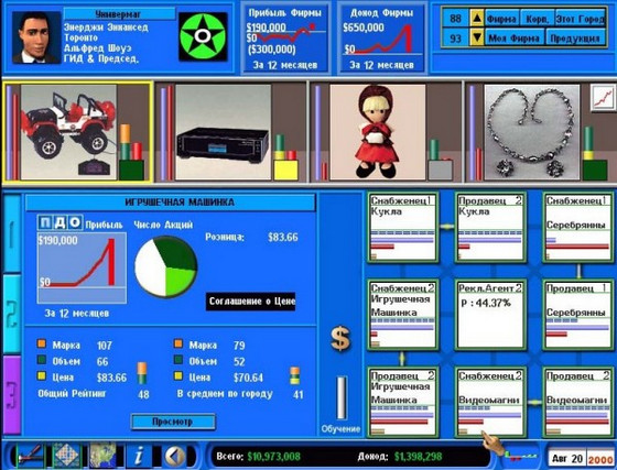 Окунитесь в мир большого бизнеса, конкурентной борьбы и форс-мажорных ситуаций. Вам придется управлять денежными потоками и контролировать товарооборот, нанимать и обучать персонал, строить новые магазины, заниматься рекламой...