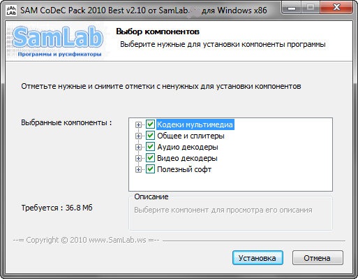 Скачать программу SAM CoDeC Pack 2010 v2.10 х64 (16,12 МБ):