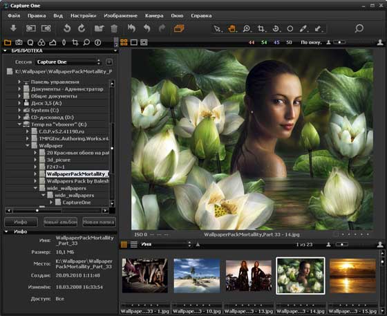Capture One Pro один из самых мощных профессиональных конверторов цифровых фотографий в формате RAW с поддержкой широкого модельного ряда современных фотокамер. Программа позволяет в одиночном и пакетном режимах конвертировать "на лету" файлы в полноразмерный TIFF (RGB / CMYK) и JPG форматы, корректировать баланс белого, эффективно обрабатывать "пересвеченные" и "недосвеченные" снимки, тонко настроить резкость снимка и устранять цветные шумы.