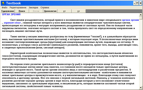 Электронная информационная система включает пять тематических разделов, в каждом из которых представлены около 20 тем, подрбно раскрывающих обо всех системах тела человека. Диск содержит 2300 иллюстраций, 1000 страниц текстового материала, словарь на 7000 терминов и может заменить десяток солидных учебников и атласов, а также пополнить домашнюю энциклопедическую коллекцию.