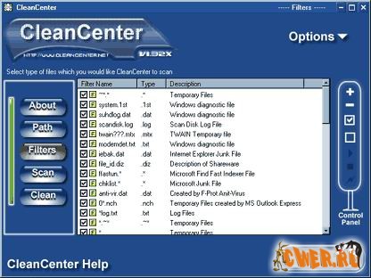 В процессе работы за компьютером на жестком диске остается множество файлов, которые никак не используются системой. Большое количество таких файлов может негативно сказываться на производительности и стабильности работы системы. Поэтому в целях профилактики необходимо время от времени удалять весь этот «мусор». Это необходимо делать также в целях безопасности, поскольку по временным файлам легко восстановить картину работы за компьютером – какие сайты посещались, какие документы были открыты и т.д. Чтобы при удалении данных не стереть ошибочно файлы, которые используются системой, лучше задействовать специальную утилиту, например, CleanCenter. Эта программа распознает свыше 60 различных типов «мусорных» файлов и может для удаления использовать фильтры. CleanCenter удаляет временные интернет-файлы, файлы cookies, а также любую информацию об открытии папок и запуске программ. Регулярное использование CleanCenter позволит «замести следы», а кроме этого, увеличит свободное пространство на жестком диске.