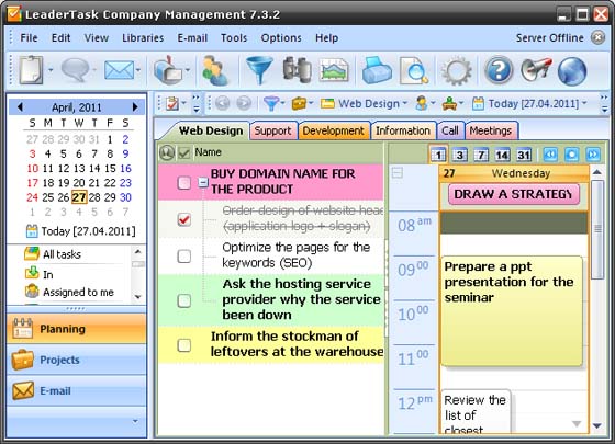 LeaderTask - это умный органайзер для лидеров! Интеллектуальная система управления проектами, событиями, задачами, контактами, освободит вас от рутины и даст больше времени для творчества. LeaderTask поможет вам избавиться от различных поглотителей времени, поможет вам увидеть четкую перспективу жизни, иметь подробный обзор дел, задач, вы будете ставить более высокие цели и достигать их. Кроме того, LeaderTask - это еще и удобный менеджер проектов, с помощью которого можно легко планировать и управлять вашими личными делами, а также бизнес проектами.