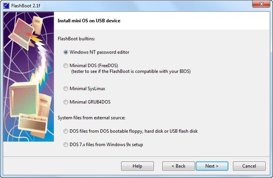 FlashBoot - утилита для создания загрузочного USB Flash диска. Кроме USB-носителей, поддерживаются другие типы устройств. Позволяет производить форматирование и копирование файлов системы. Поддерживаются различные операционные системы: Windows 7/Vista, Windows XP, SysLinux, диски GRUB4DOS, Linux kernel и т.д. Вы можете создать чистую загрузочную USB-флэшку с минимальным набором файлов системы и затем вручную настроить "под себя", или преобразовать полнофункциональный самозагрузочный CD-ROM или дискету к самозагрузочной USB-флэшке, содержащей все функциональные возможности оных. FlashBoot может как отформатировать физический диск, так и создать его образ.