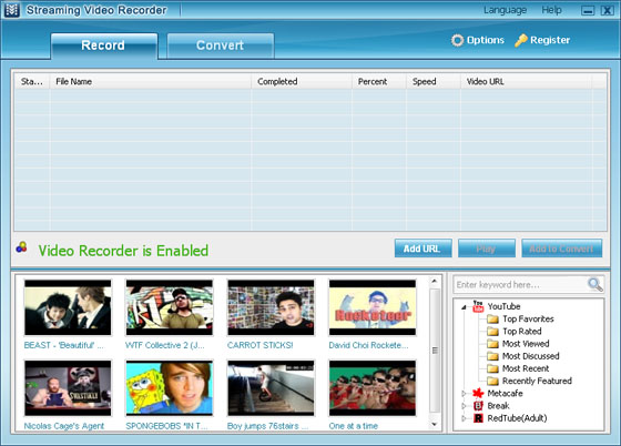 Wondershare Streaming Video Recorder работает по принципу "что смотрю, то и получаю". Будучи мощным онлайновым ТВ рекордером, программа позволяет записывать практически все ТВ-каналы, веб-видео, скачивать онлайновые ТВ-шоу и даже потоковые фильмы, транслируемые различными сетевыми потоковыми протоколами(поддержка YouTube, Yahoo, Google, NBC, CBS, BBC и других более 1400 онлайн TV каналов). Встроенный конвертор позволяет конвертировать загруженное видео в MP4, 3GP, WMV, AVI, MOV, MPG для вашего iPhone, IPOD, сотового телефона и т.д.