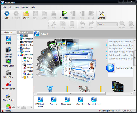 MOBILedit! - уникальная модульная программа, которая позволяет Вам управлять вашим мобильным телефоном с персонального компьютера через Bluetooth, ИК-порт или кабель. Вы можете легко скопировать фотографии с телефона или загрузить в него ваши любимые мелодии, логотипы, MP3, а также просматривать историю звонков и SMS сообщений. Вы можете набирать номер, отправлять SMS (русский, к сожалению, не поддерживается), принимать телефонные вызовы, редактировать список контактов и играть в игры ...