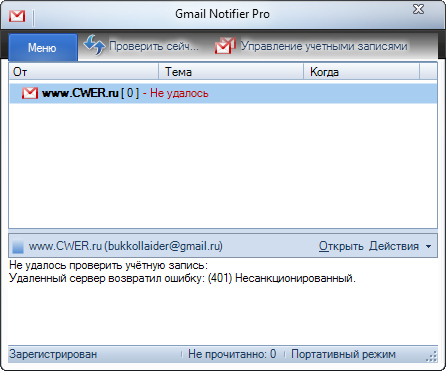 Gmail Notifier Pro - инструмент, который служит для оповещения о приходе нового письма в службе Gmail. Но Gmail Notifier Pro больше чем просто инструмент для оповещения, с его помощью можно проверить почту, а также создать новые сообщения из интерфейса рабочего стола. Также можно следить за несколькими аккаунтами Gmail.