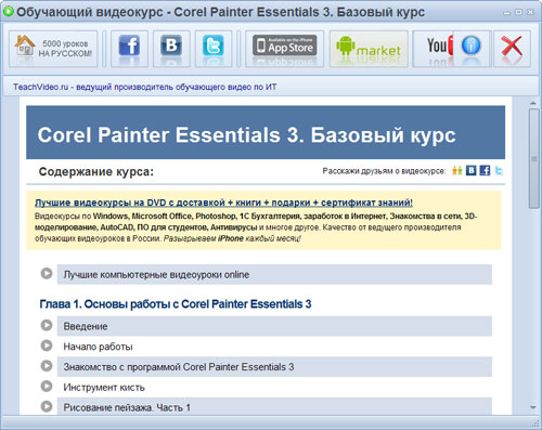 А также важные функции: добавление художественных эффектов в изображениях, управление глубиной цвета экспорт и импорт в графические форматы PhotoShop , TIFF, JPEG, BMP, GIF, EPS, PAINT SHOP PRO. Файл представляет собой удобную оболочку, после установки которой, вы сможете просматривать видеокурс в хорошем качестве и разрешении.