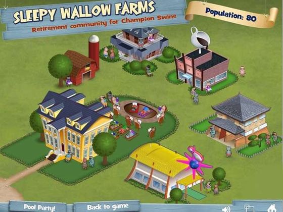 В этой забавной карточной игре Вам предстоит ухаживать за своими свинками, откармливая их разнообразными продуктами. Нужно всего лишь создавать цепочки из комбинаций блэк джека. Чем больше цепочек - тем быстрее Ваша свинка отправиться отдыхать на уютную фермочку, а Вы будете приглядывать уже за новым поросенком. В качестве успешно выполненной работы Вам предоставляется возможность покупки различных развлекательных заведений: бар караоке, кегельбан, кинотеатр, тату салон и даже футбольный стадион!