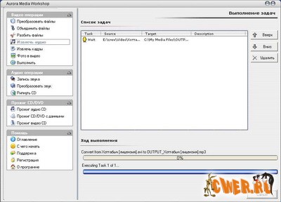 Программа может предложить и возможности для выполнения основных операций по работе со звуком. Она умеет преобразовывать аудио файлы, делать риппинг аудио треков, производить запись с внешних источников, например, с микрофона или линейного аудио входа звуковой карты.